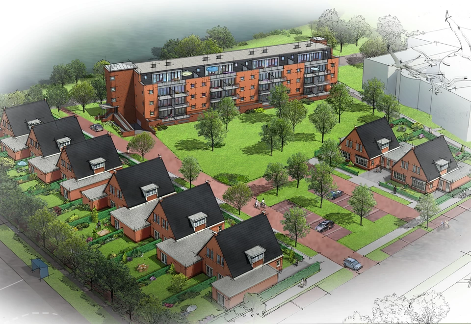 Het project aan het Dr. Wilminkplantsoen betreft 16 ‘levensloopbestendige’ grondgebonden woningen en een appartementencomplex (28 appartementen) met ondergelegen parkeerkelder.