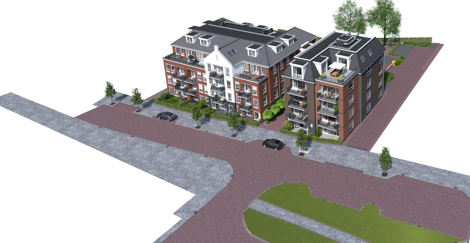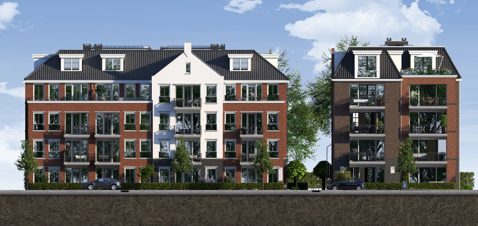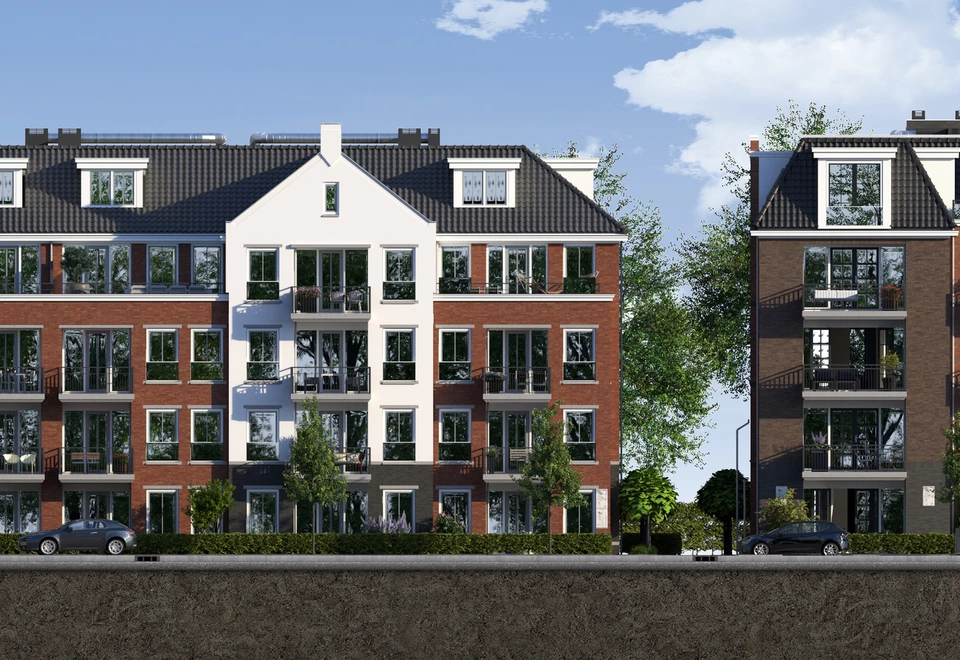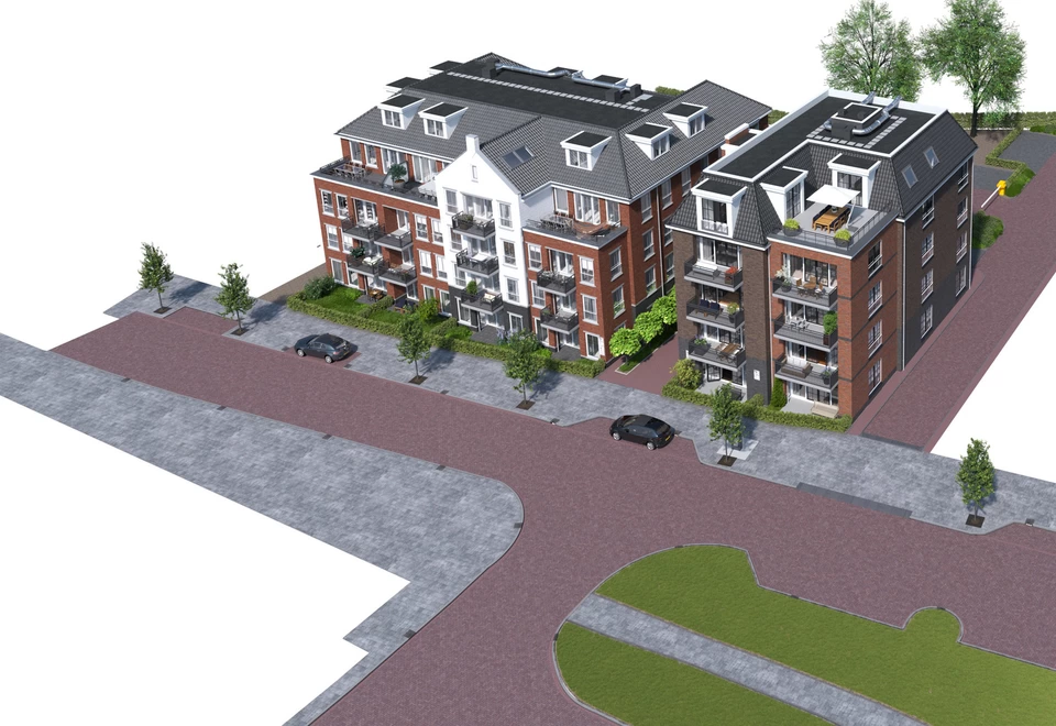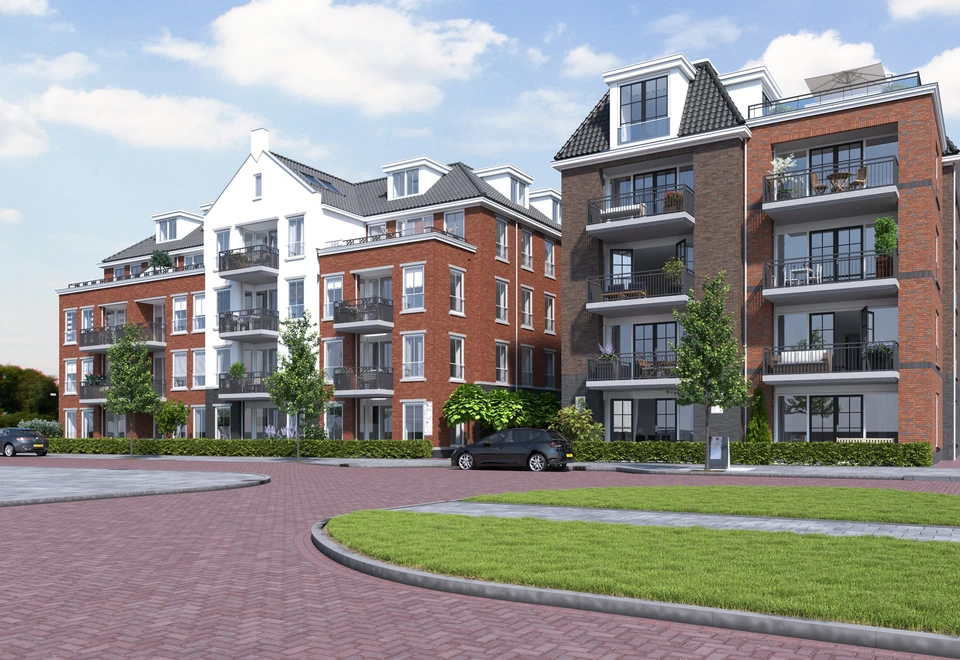 Grondgebonden woningen en een appartementencomplex met ondergelegen parkeerkelder.